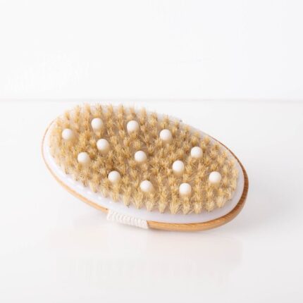 Brosse de Massage et Exfoliation à Sec – Poils Naturels & Picots de Massage